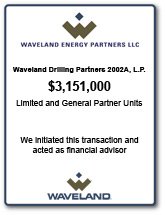 Over the past 20 years, Waveland Energy Partners has sponsored or served as managing general partner for more than 40 energy programs. Waveland has been active in the Mid-Continent region in Oklahoma since 2002, the Permian Basin in Texas since 2012, the San Juan Basin in New Mexico since 2016, and the Williston Basin since 2018. We invest alongside many of the largest and most active E&P companies in North America. Please view the below tombstones of Waveland’s portfolio of investment activities.