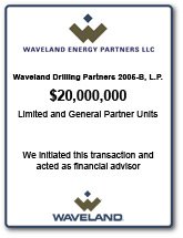 Waveland Drilling Partners 2006-B, L.P. was formed by Waveland Energy Partners LLC to enable investors to own diversified working interests in oil and natural gas properties located in Central and Southeastern Oklahoma, the Texas-Louisiana Gulf Coast, and East Texas. The Oklahoma properties are ‘Resource Plays’ where hydrocarbons are known to be present, whereas the Texas-Louisiana Gulf Coast and East Texas properties are predominantly higher impact exploration prospects with higher risk and higher return profiles. To maintain diversification and mitigate risk, roughly two-thirds of the Fund’s portfolio will be allocated to Resource Play Projects. The remaining one-third of the Fund’s portfolio will be allocated to exploration prospects.