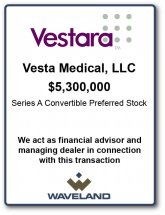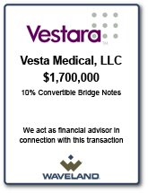 At his prior firm, Waveland CEO Michael Greer sourced this transaction in 1998 and led both a bridge financing in late 1998 and an equity financing in the first two quarters of 1999. During the equity financing, with the assistance of Mr. Greer and his firm, the company negotiated the sale of its Neptune™ fluid waste management system to Stryker Corporation (NYSE:SYK) for a multi-year royalty payout estimated to ultimately exceed $30 million.